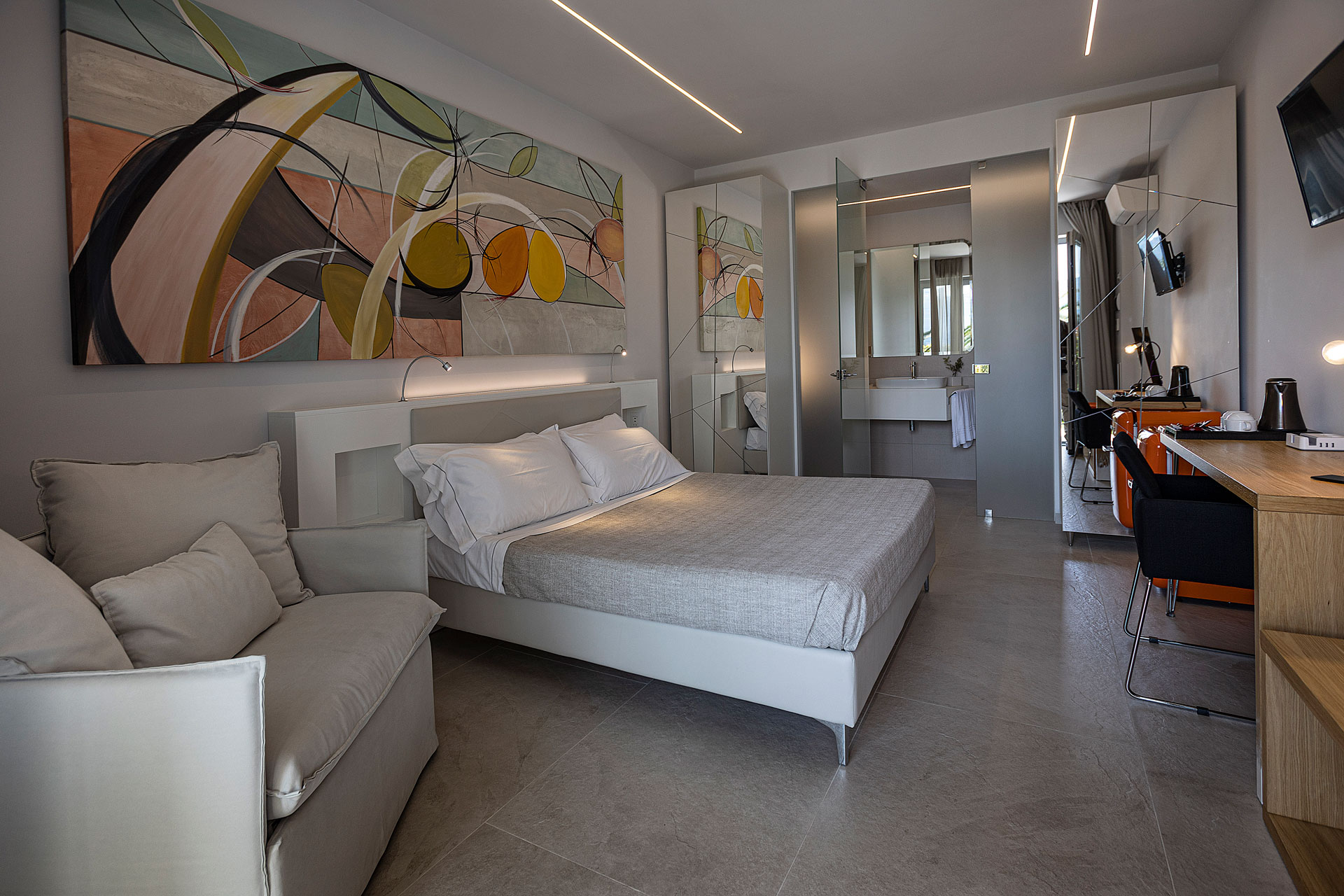 Arredate in stile moderno e dotate di ampia terrazza, le camere si trovano nella nuova dependance, immersa in un ambiente calmo e rasserenante.